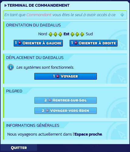 Le Terminal de Commandement sur le Pont permet de manœuvrer le Daedalus.