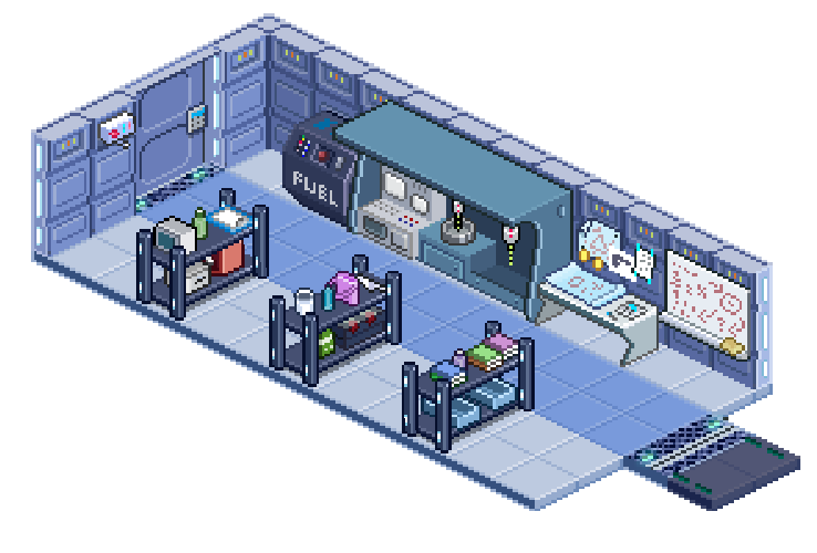 Revision as of 19:09, 18 February 2026 by Thibaut3000 (talk | contribs) (Une capture d'écran sans arrière-plan de la salle dans eMush, sans aucun personnage ou projet ou projets actif.)