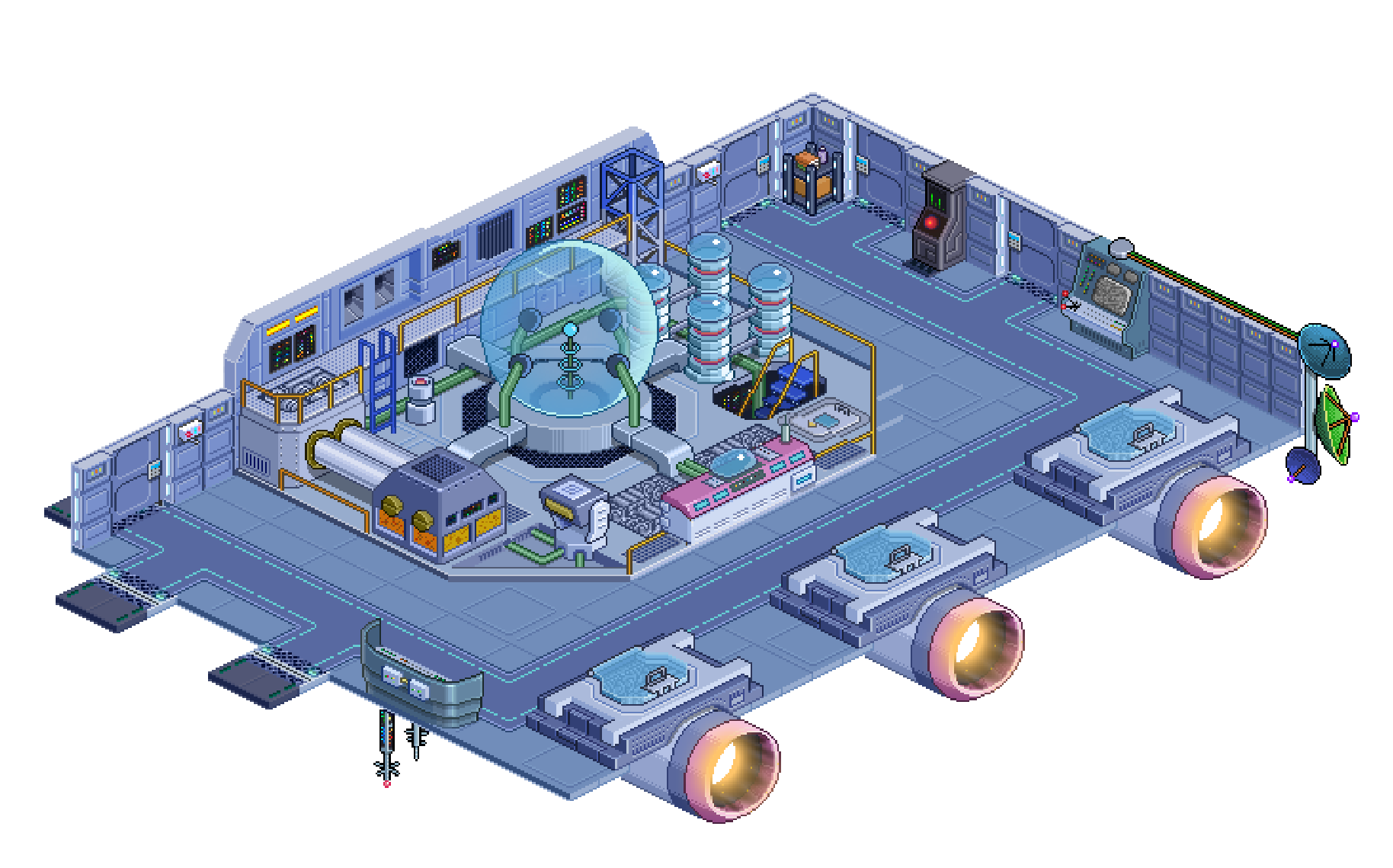 Une capture d'écran sans arrière-plan de la salle dans eMush, sans aucun personnage ou projet ou projets actif.